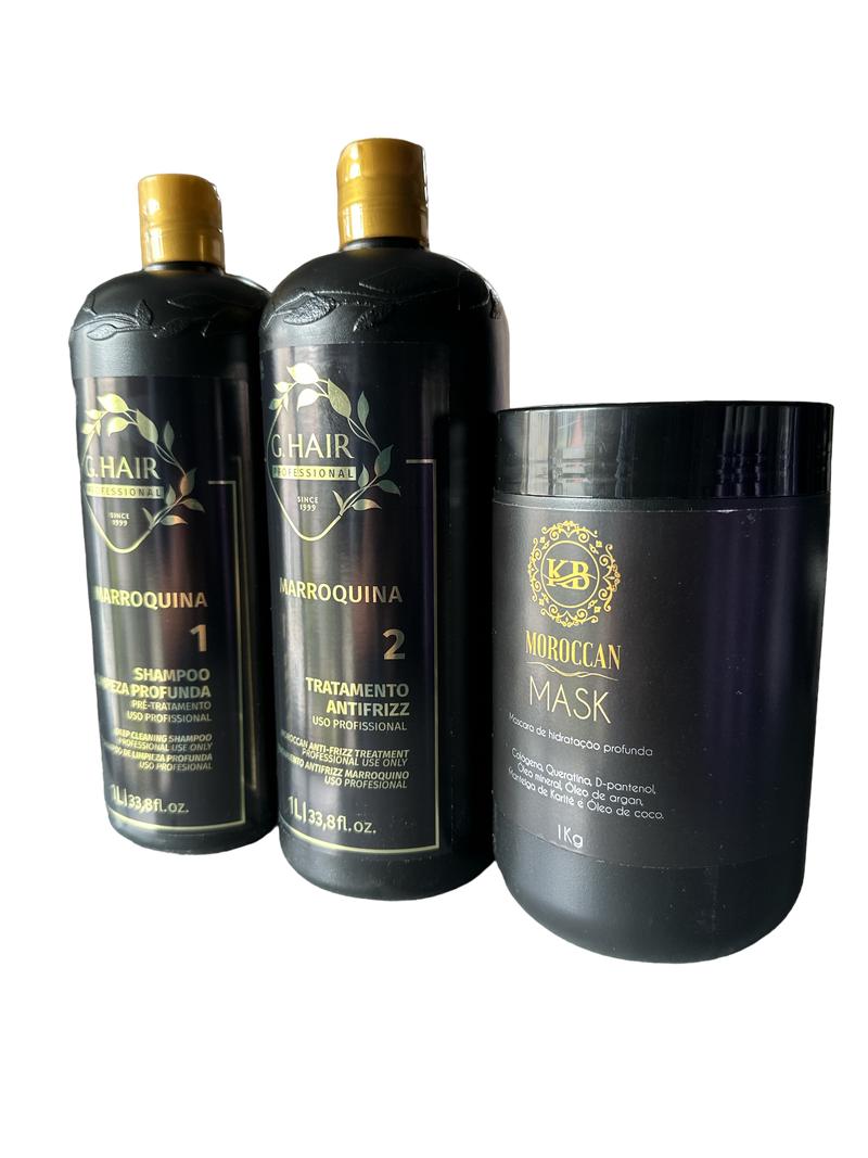 KB Moroccan Complete Hair Revival Kit Cleansing Shampoo, Straightening Treatment & Repair Mask 3 PCS . 1000ml 34 oz